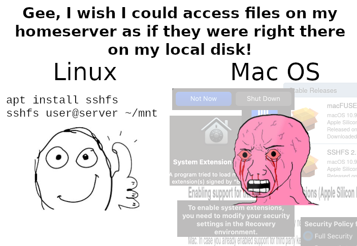 I’d rather a desktop app or a terminal app for remote file systems than install a kext on a mac. Like, kicking stuff out of the kernel was an excellent idea.