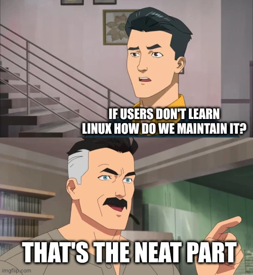 And yet… linux is hard, and users decry RTFM as “not growing the userbase”