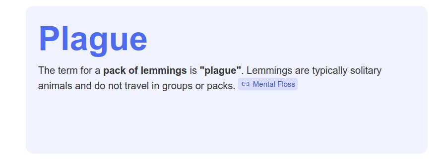 TIL a pack of lemmings is called a plague