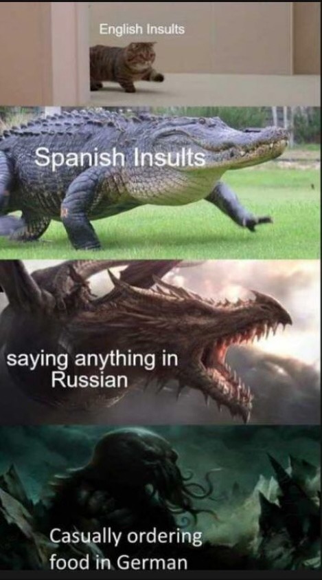 minus-squareepicstove@lemmy.calinkfedilinkEnglisharrow-up12·8 months agoI’m in Switzerland rn and German really does not sound that aggressive. They actually sound quite kind and sweet. Polish and Finnish swearing though… That’s next level.