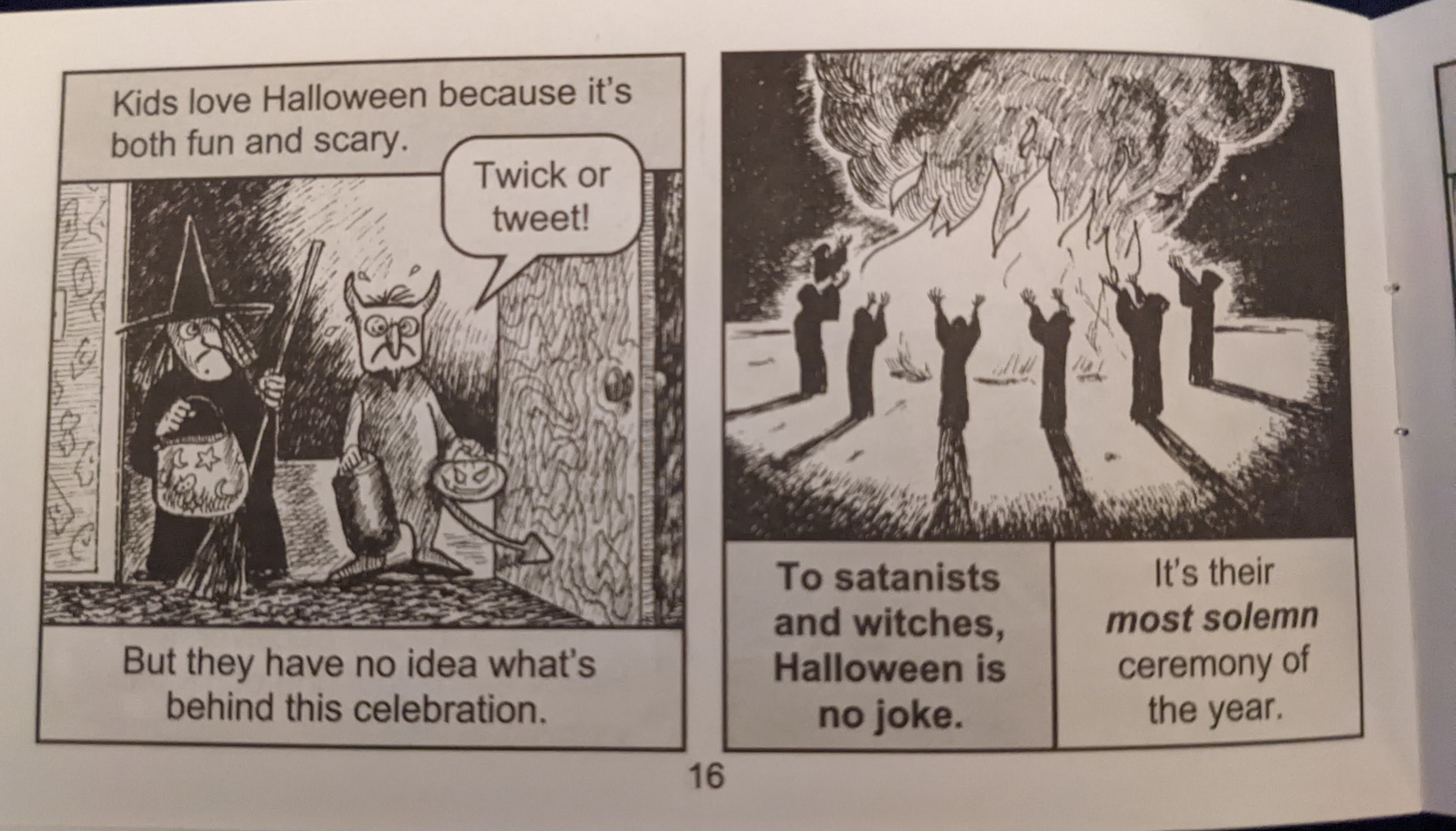 Welcome to Chick tracts! Evangelicals like (or used to like, dunno if they still do) buying copies to leave in public bathrooms, on public benches, etc. Somehow this is supposed to ‘bring people to God’.