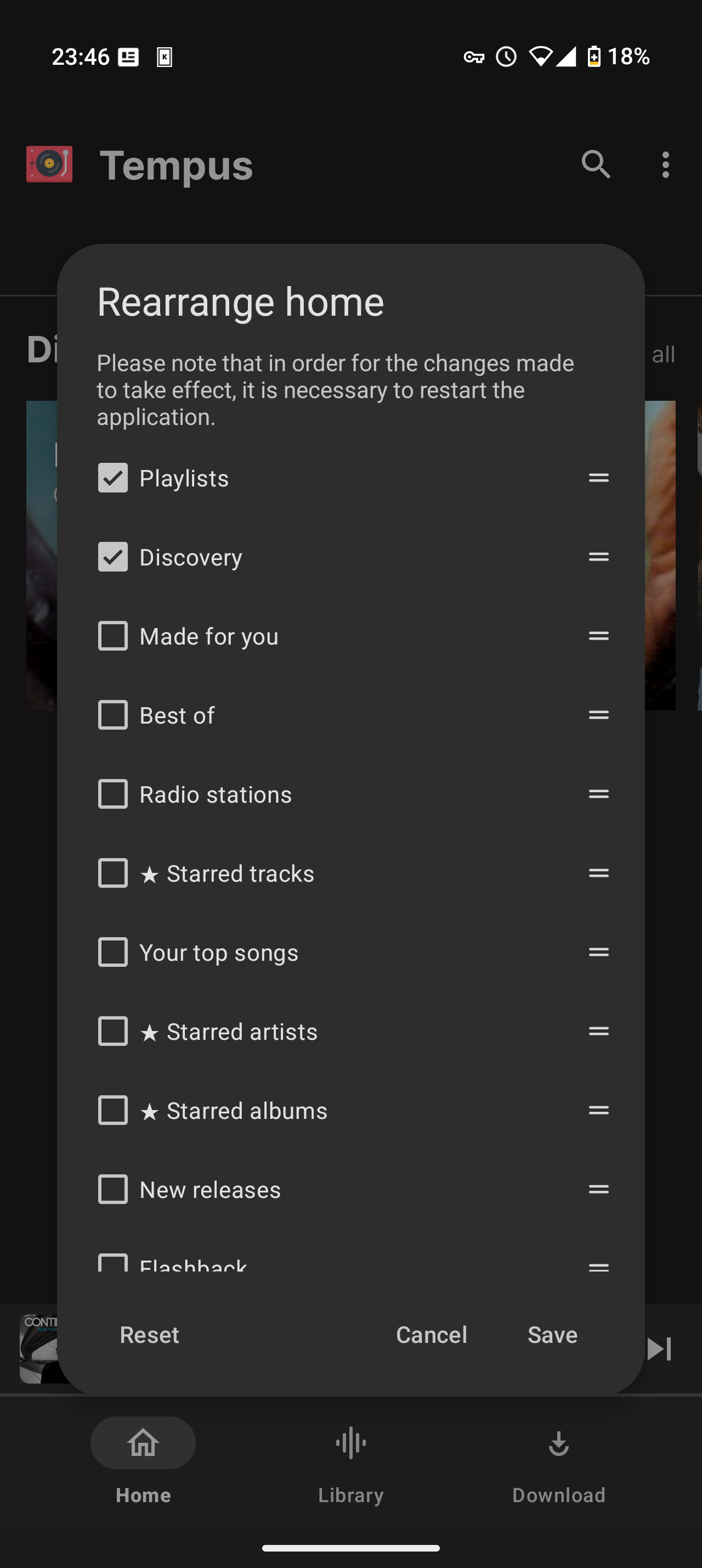 I have found one bug (can open an issue if you prefer), where when on the Home screen, at the bottom i can ‘reorganize’ my layout, however im not able to make “Playlists” category appear at all.