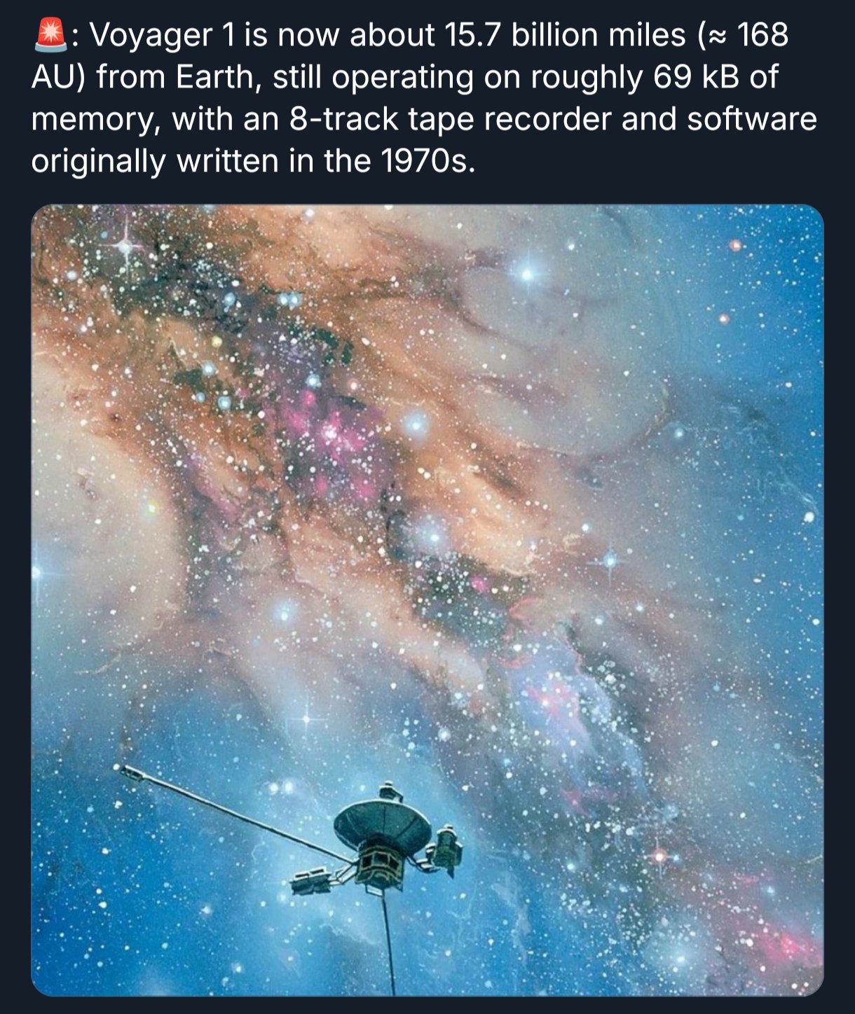 minus-squareEzTerry@lemmy.ziplinkfedilinkEnglisharrow-up43arrow-down1·27 days agoTo be fair AU means more to me than miles or km in this case… 168 times further from us than we are to the sun. But since you want metric ~25.1 terameters.