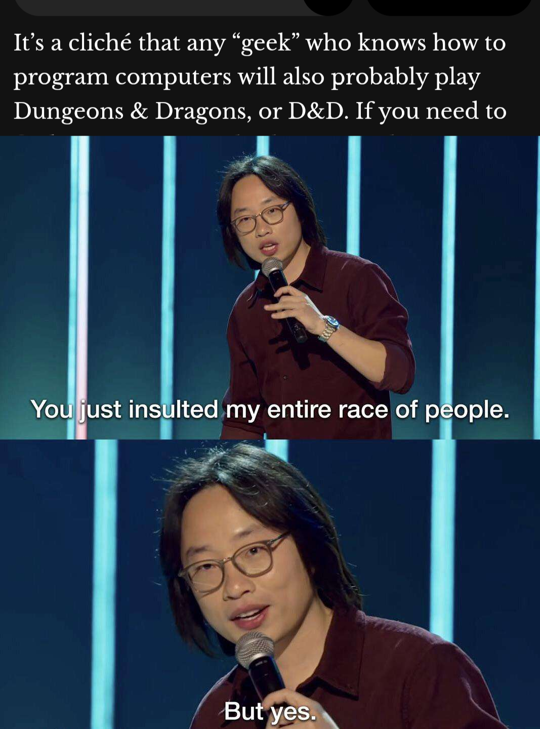 Not everybody at my company that knows how to program also plays dnd. Just everybody who is good at it.