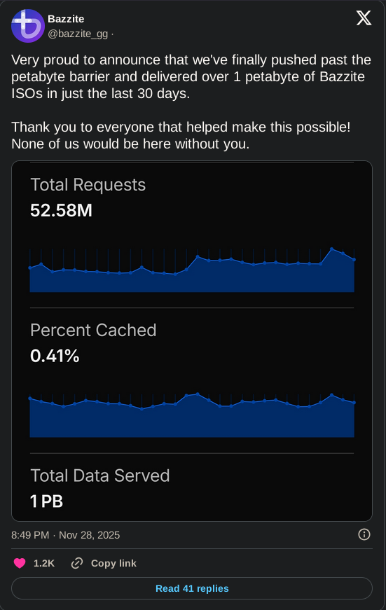 arrow-up1601arrow-down1external-linkBazzite just delivered over a petabyte of ISOs in a single monthwww.xda-developers.commarcie (she/her)@lemmy.ml to Linux@lemmy.ml · edit-23 days agomessage-square175linkfedilinkfile-textcross-posted to: linux@programming.dev