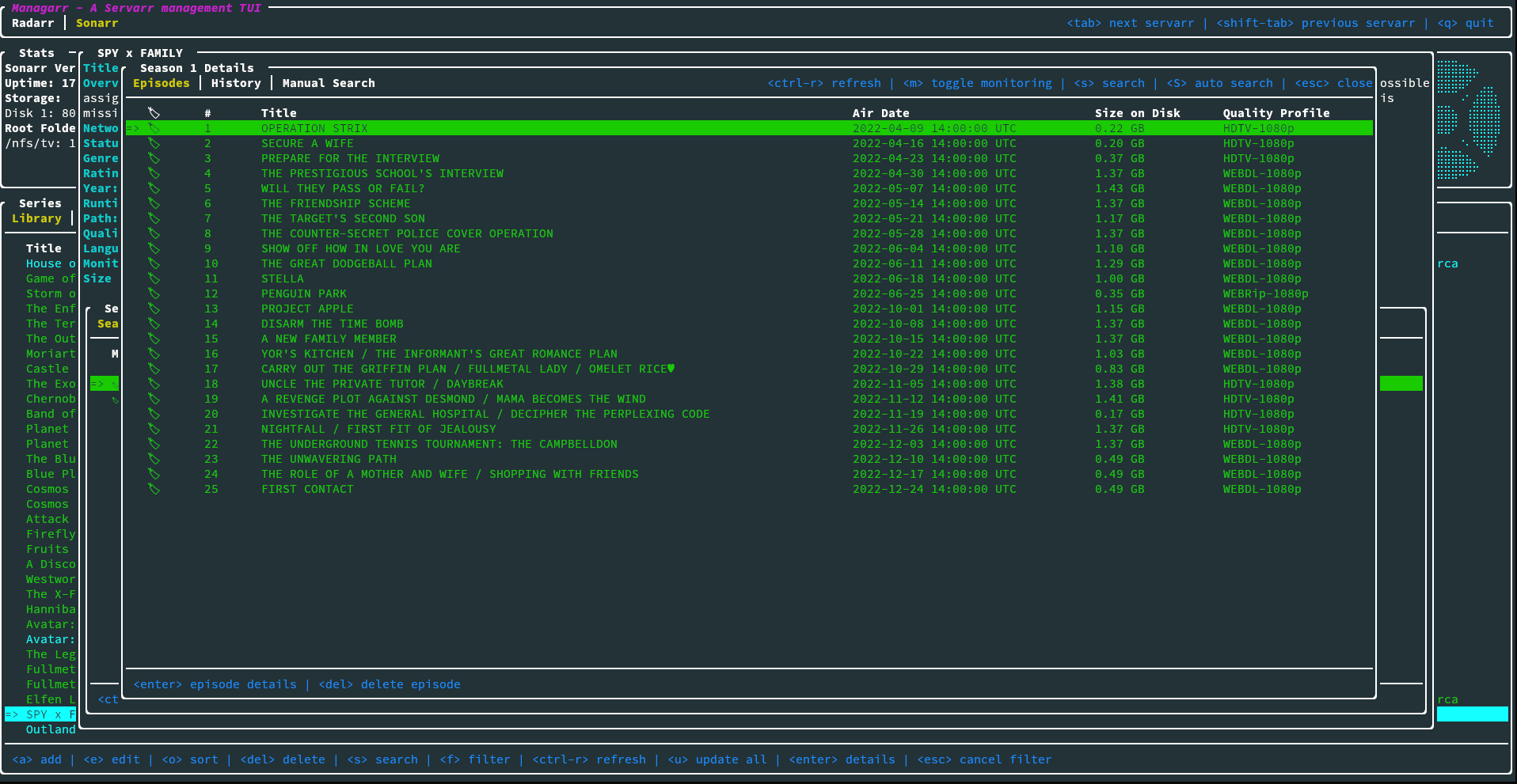 TL;DR: Managarr is a TUI and CLI for managing your Servarr instances. As of now, it now supports both Radarr and Sonarr and all the features that are available in the UI are also available in the CLI for scripting and additional automation.